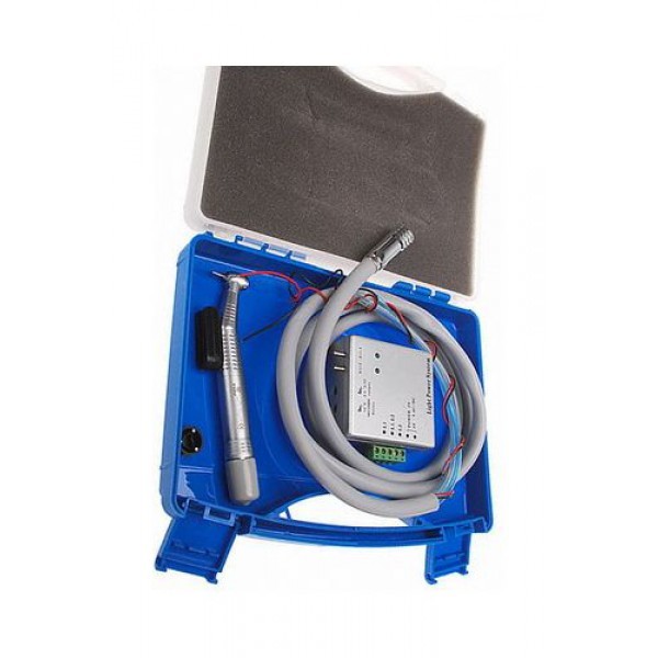 Блок на два шланга с регулировкой яркости. Блок имеет два независимых канала «1» и «2» для обеспечения работоспособности двух турбинных наконечников.     Шланг на 4+2 канала с расположением световых элементов в разъеме самого шланга (что исключает поломку от кручения фиброволокна, когда источник света расположен в блоке);     Наконечник с фиброоптикой, ортопедической головкой, кнопочной фиксацией бора, трехточечным спреем и системой мультифлекс для быстрой смены наконечников     Инструкция     Кейс