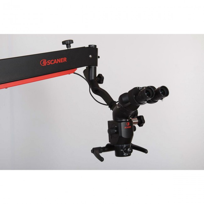 Calipso МD500-DENTAL - медицинский прибор, предназначенный для стереоскопического наблюдения с увеличением с возможностью подключения устройств цифрового фото-видео документирования. Область применения: диагностика, небольшие оперативные вмешательства в стоматологии, нейрохирургии, оториноларингологии и другие области хирургии. Конструктивное исполнение: Оптическая система. Апохроматическая оптика с многослойным антирефлексным покрытием. Все линзы и призмы изготовлены из высококачественного стекла производства компании Schott (Германия). Широкоугольные окуляры 12,5Х с увеличенным выносом выходного зрачка. Источник света. Мощный сверхъяркий светодиод (LED) со спектром, близким к дневному свету и высоким уровнем освещения. Малое тепловыделение, высокая безопасность и надежность. Улучшает контраст и четкость мелких деталей. Пятилинзовый конденсор формирует световое пятно с освещенностью более 60000 люкс с идеальной равномерностью по всему полю зрения. Автоматическое выключение освещения при выводе оптической головки в нерабочую зону. Штатив. Напольный, устойчивый, с самонаправляющимися прорезиненными колесами с системой торможения и пантографическим кронштейном на современной газовой пружине. Возможна комплектация штатива с потолочным или настенным креплениями. Светофильтр. Оранжевый, предотвращает преждевременную фотополимеризацию, легко вводится и выводится из поля зрения или зеленый для повышения контраста кровеносных сосудов. Видеорегистрация и видеотрансляция. Вместо штатной видеосистемы микроскоп может комплектоваться оптическими адаптерами для подключения фотоаппаратов и видеокамер. Преимущества: Высокая надежность Эргономичный дизайн Удобство и простота обслуживания Большое количество степеней свободы