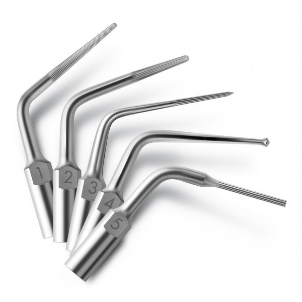 Каждая насадки имеет несколько возможных применений, что позволяет стоматологу точно знать какую насадку использовать в какой ситуации. Насадки сделаны из нержавеющей стали, они прочные и устойчивы к перелому, насадки могут вибрировать в воздухе и не ломаться. Микроскопическая нарезка активной части насадки позволяет минимизировать риск потенциального изнашивания слоя алмазного напыления в ротовой полости пациента.
